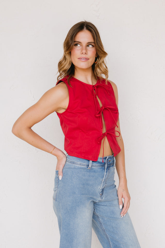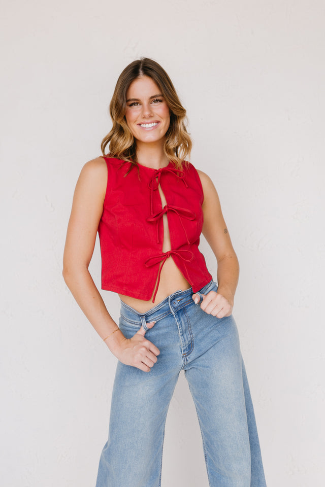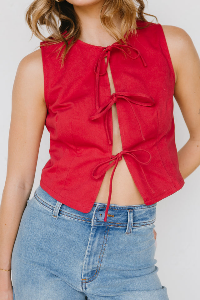 Red denim vest